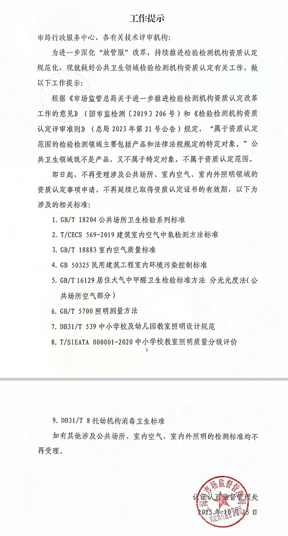 根据《市场监管总局关于进一步推进检验检测机构资质认定改革工作的意见》和《检验检测机构资质认定评审准则》规定,公共卫生检测不再属于CMA资质认定范围,故相关资质认定的申请不再受理,已取得资质认定证书的有效期也不再延续。鉴于上述规则的重新认定,市场环境出现重大改变,故上海空调清洗行业协会邀请部分检测机构召开座谈会,就上述内容进行探讨。